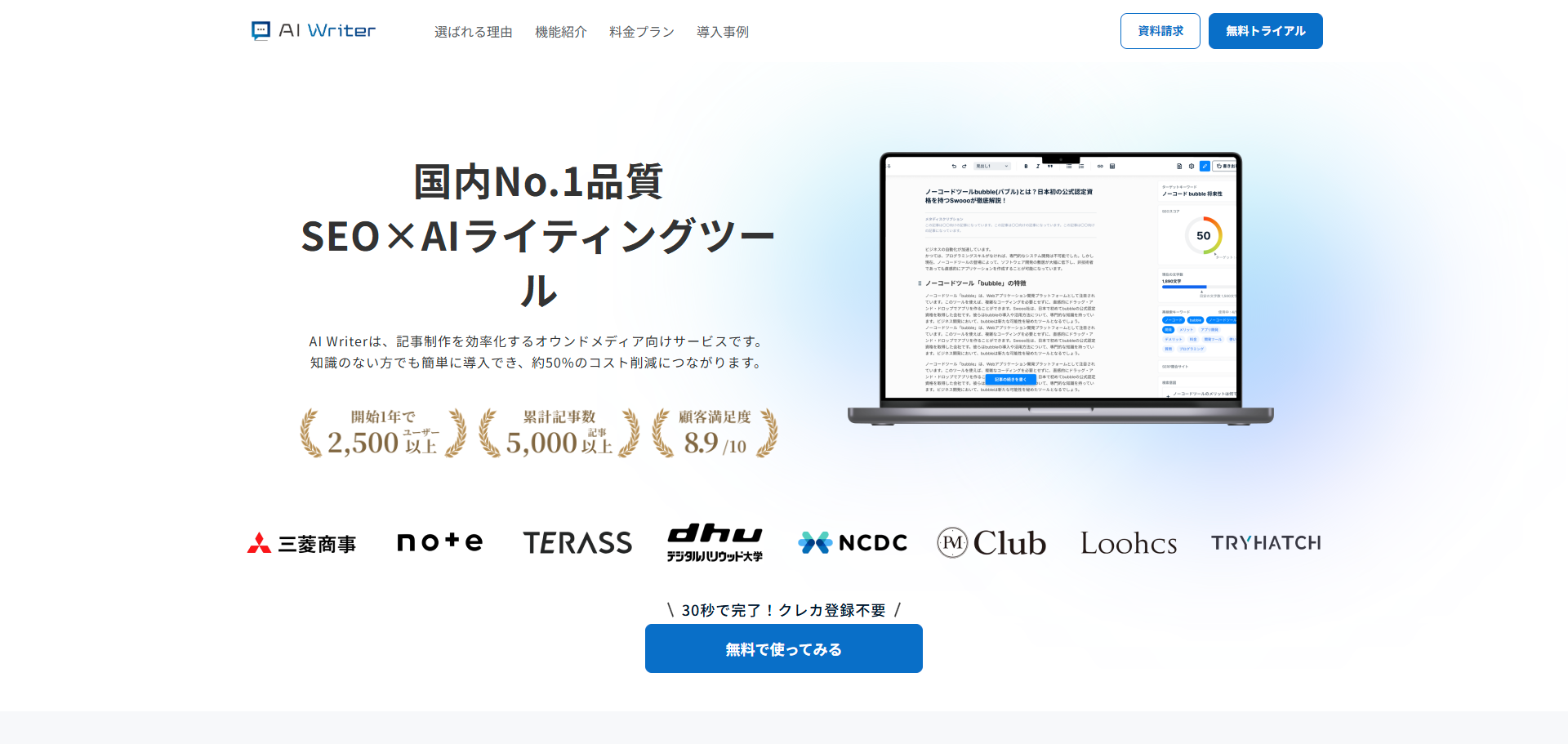 AI Writerは、高品質なSEO記事を効率的に作成できるAIライティングツールです。