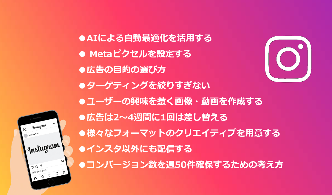 Instagram広告を出すには、ただ投稿を宣伝するだけではなく、Metaの広告マネージャーを使った設定や、広告フォーマットの選択、ターゲティングや予算の管理など、いくつかの手順があります。また、スマホとPCでは出稿方法も異なるため、使い慣れたデバイスに合わせたやり方を知ることも大切です。