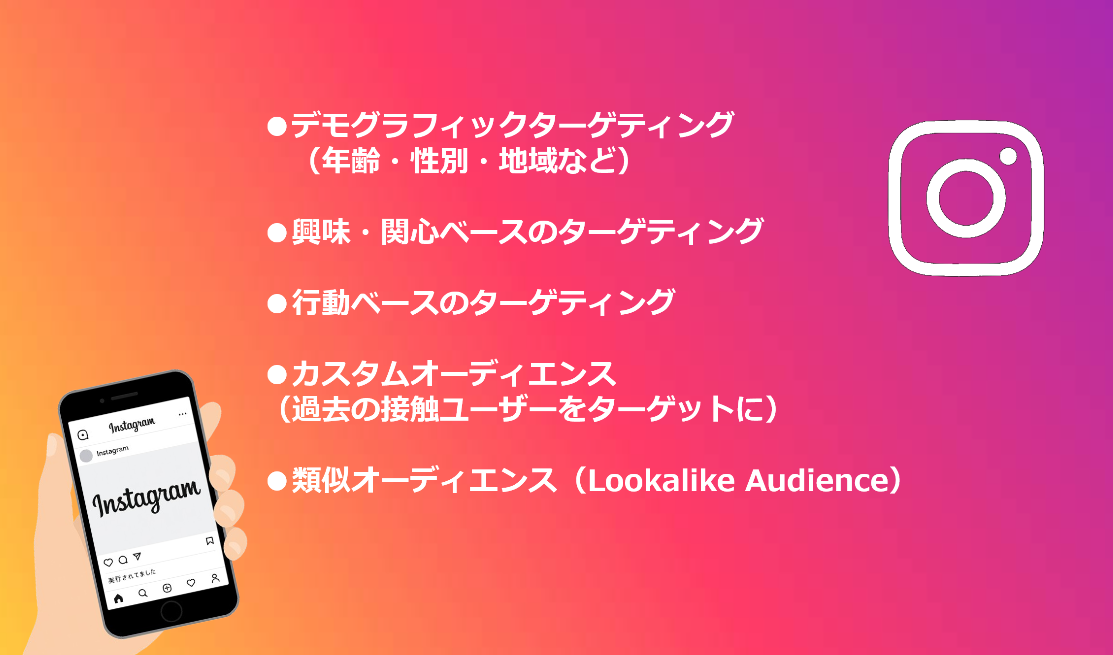 Instagram広告の成果を高めるには、これらのターゲティング手法を組み合わせて、最適なユーザー層にリーチすることが重要です。