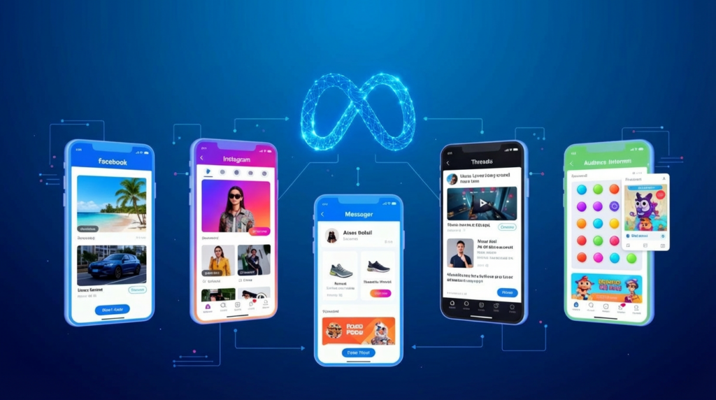 Meta広告の強みの一つは、複数のSNSプラットフォームを横断して広告を配信できる点にあります。Facebook・Instagram・Messenger・Threads・Audience Networkといったサービス群に、目的やユーザー属性に応じて自動的に最適化された形で配信されます。これらを総称して「配信面(Placement)」と呼び、キャンペーン作成時に「Advantage+ 配信面(Advantage+ placements)」(旧「自動配置」)を選択すれば、AIが成果の高い面を優先して配信してくれます。