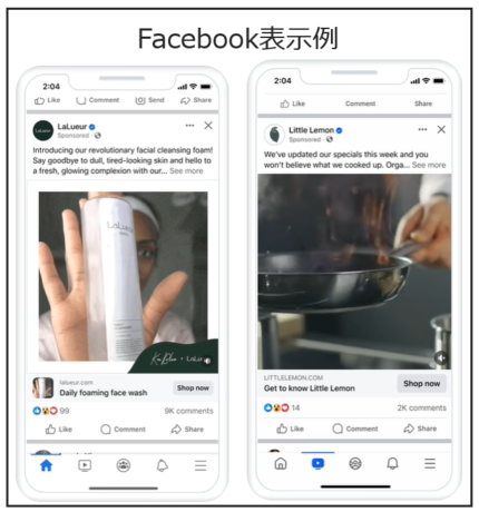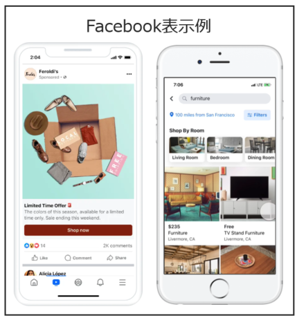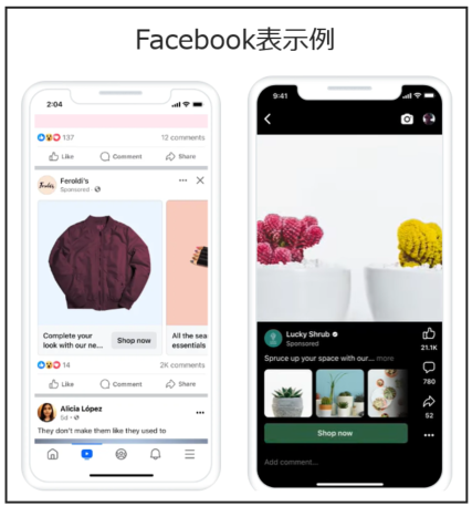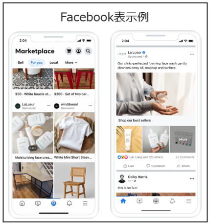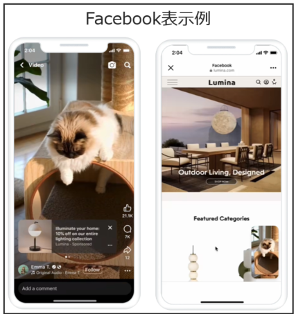 | Audience Network | 外部アプリ・Webサイト | Meta外部のアプリやサイトにも拡張配信できる。 |
